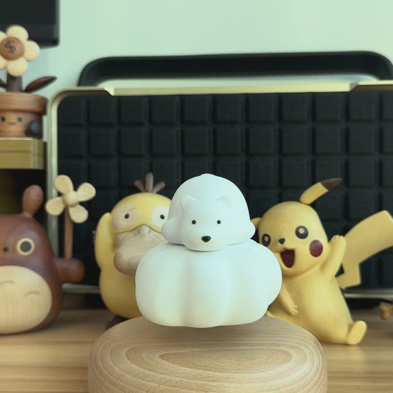 Bring calm and creativity to your space with this Magnetic Levitating Polar Bear On Cloud. Featuring a hand-carved polar bear resting on a floating white cloud, it hovers gracefully above a natural wooden base, creating a magical desk or home décor centerpiece.